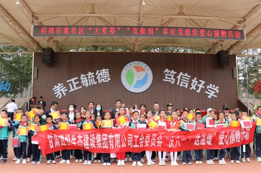 6月1日,生態(tài)建設(shè)公司工會聯(lián)合蘭州新區(qū)經(jīng)緯印象社區(qū)“大黨委”“雙報到”單位開展“情暖六一、幫扶筑夢”愛心幫扶捐贈活動,走進蘭州新區(qū)第三小學(xué),向?qū)W校的困境兒童捐贈了100余份書包及各種學(xué)習(xí)用具,并為他們帶去節(jié)日的祝福。